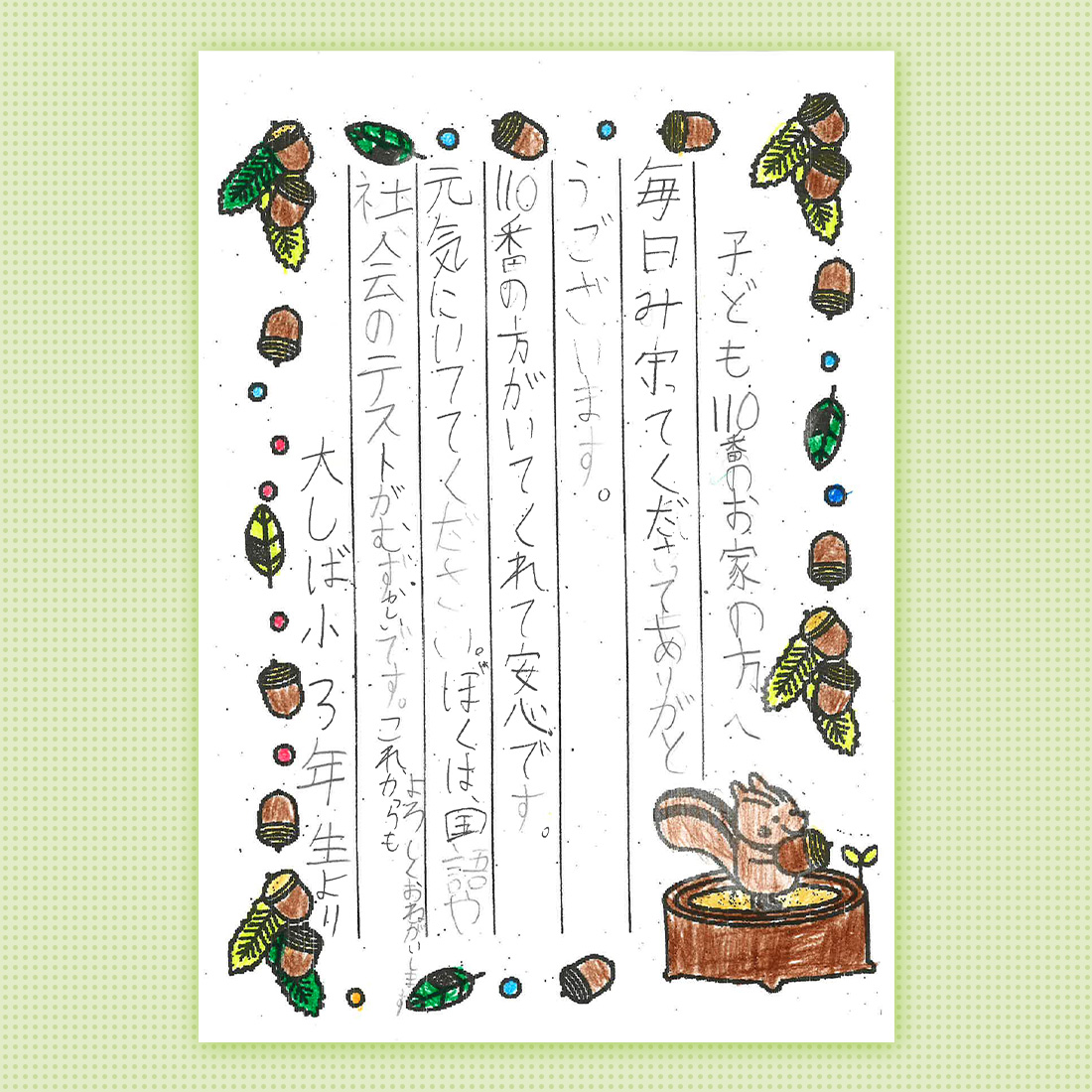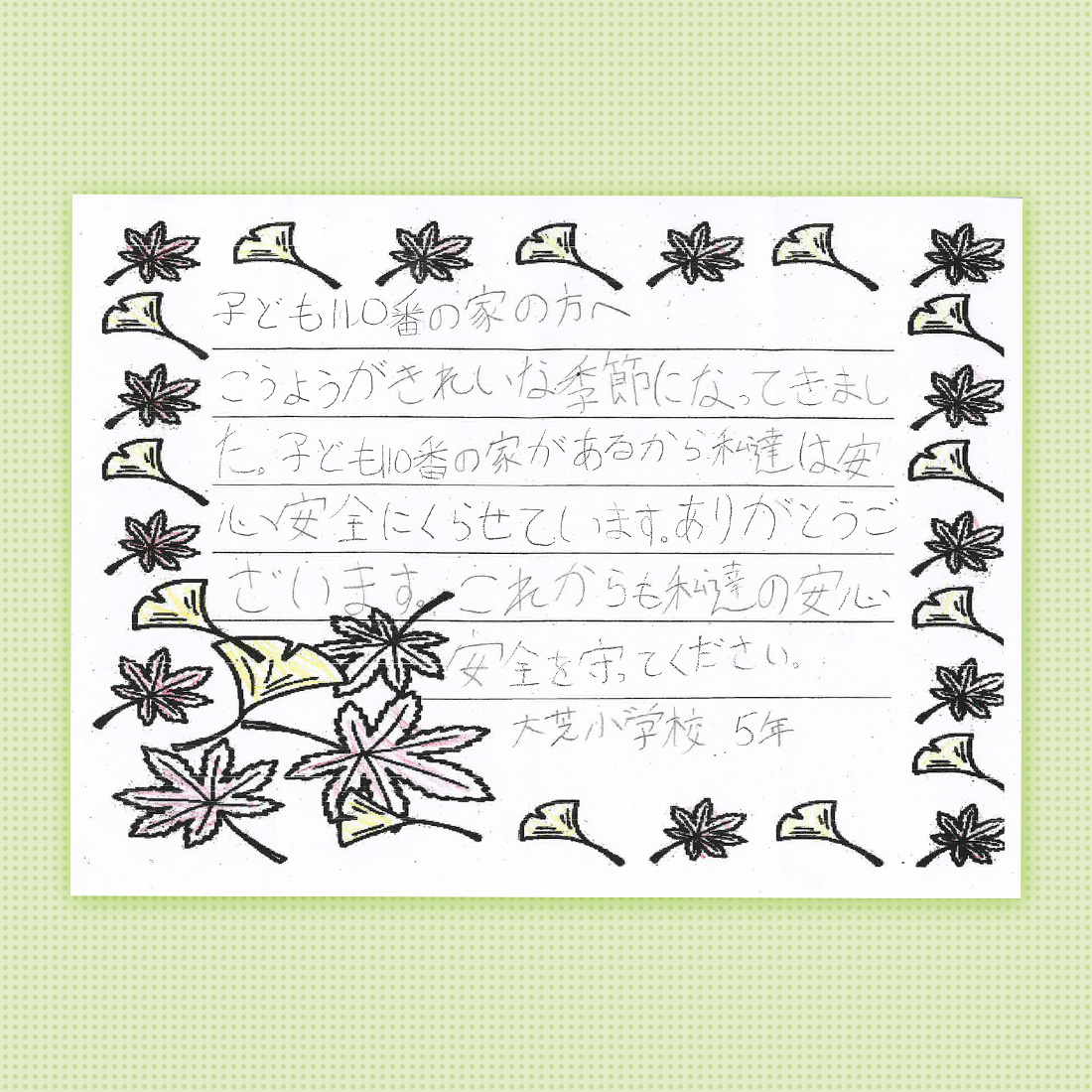 10/24に開催された「こども110番の家ウォークラリー」にて、お礼のお手紙をいただきました。