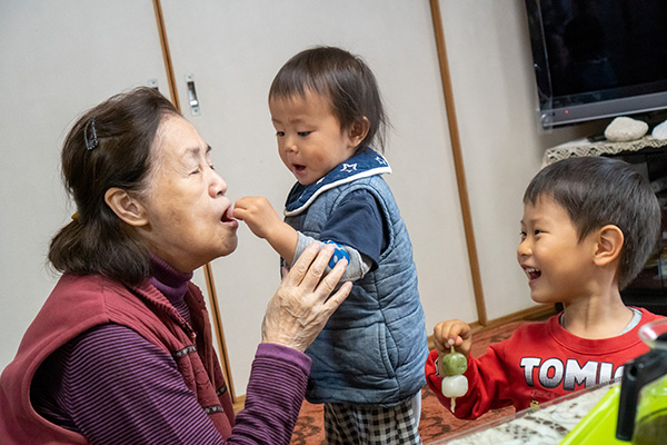 ひ孫が沢山いても「可愛い可愛い」とめでる祖父と、大きい方を踏ん張る娘。