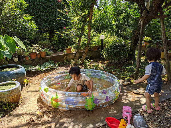 コロナ禍だったので、自宅の庭にて全力でプールを楽しみました。