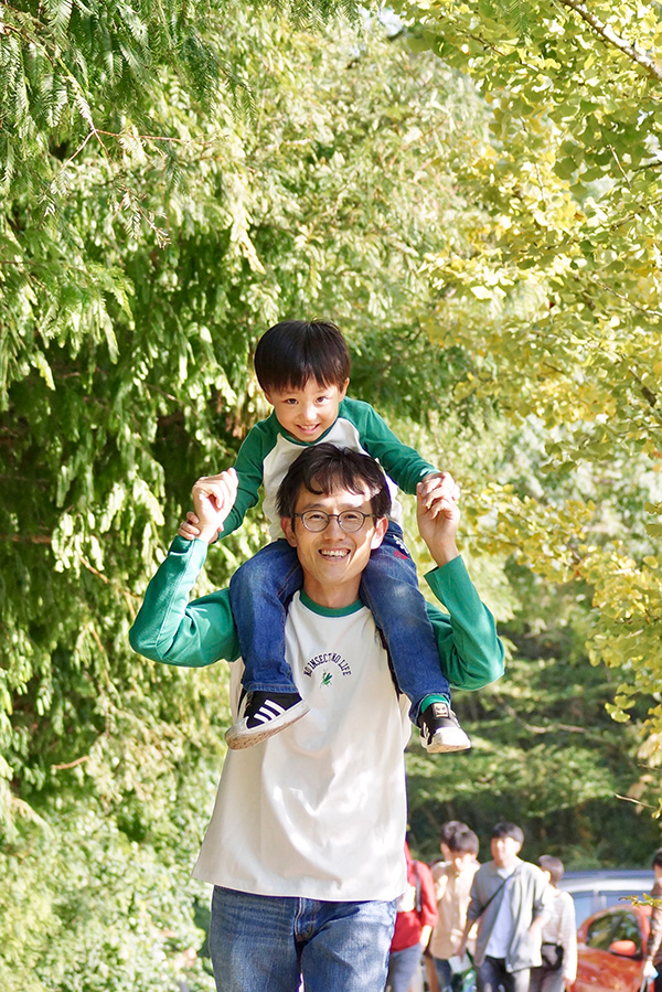 紅葉の秋色に囲まれて、ファインダーから覗く楽しそうな家族の姿がとても印象的でした。