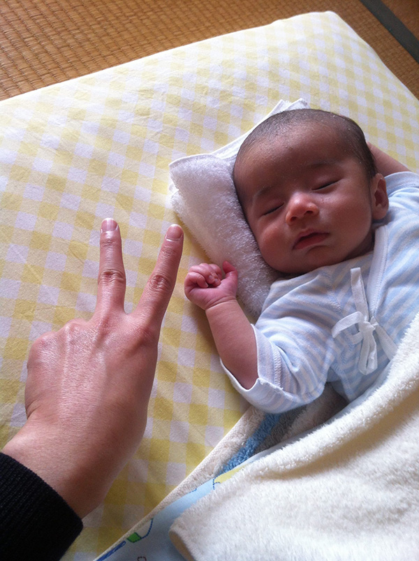 娘が生まれてすぐ、はじめて抱っこをしたときの写真。